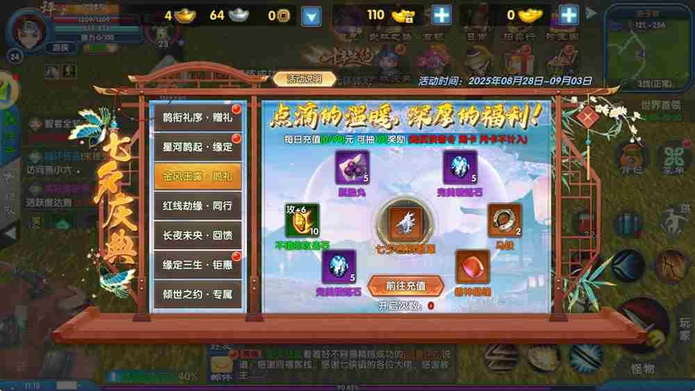2. 资源规划:参与“金风玉露·鹊礼”前,先明确日常养成需求(如精炼装备、提升坐骑等级等),合理分配资源,实现奖励最大化利用。