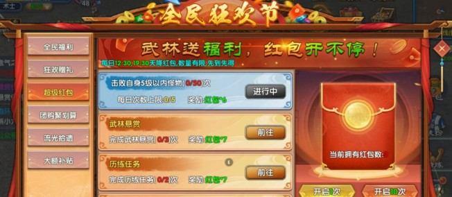 该活动以积累红包次数为核心,终极奖励为限定称号【天选之子】(霸气外观 + 属性加成),额外解锁 700 次红包可获得经脉突破丹。红包获取有两大途径:一是日常任务积累,积极完成悬赏、帮派、历练、破关等常规任务,可稳定收集红包;二是定点抢红包雨,活动期间每日 12:30 和 19:30 会触发天降红包,建议提前定好闹钟,准时上线抢夺,这是快速提升红包次数的关键。想要拿下【天选之子】称号,需累计开启 550 次红包,活跃玩家可通过 “日常任务 + 定点抢夺” 双管齐下,合理分配每日游戏时间,避免过度肝度影响体验。