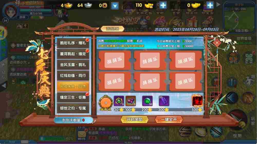 消费返利与刮奖玩法同步上线!每消耗100元宝或绑元(交易行、摆摊消耗不计入内),便可得到1张刮刮卡,每日设有消费上限。刮刮卡奖品包括完美精炼石、坐骑经验丹、装扮碎片等,累计刮奖次数达到指定标准,还能解锁额外大奖,小投入带来大回报,欧皇附体就在此刻!
